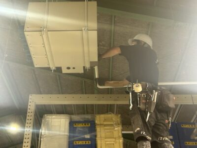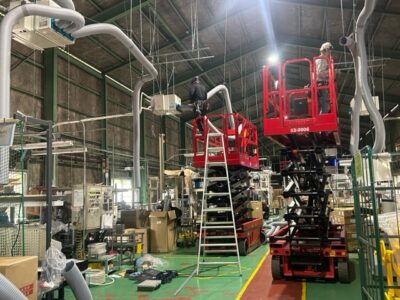 お客様より工場内の作業環境が非常に高温となり、当社にてスポット空調機の設置工事を実施いたしました。